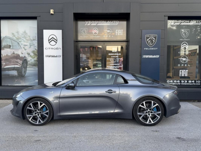 II GT, essence, gris foncé, 01/05/2023, première main, Ambiance intérieure Noir avec surpiqûres contrastées en Gris, Jantes 18" Sérac, Logo Alpine sur les ailes avant, Pack Microfibre, Peinture mate Gris Tonnerre, Sellerie cuir, Sièges chauffants, Système Alpine telemetrics, Système audio Focal Premium, 2 airbags, Affichage multi-fonctions 7.00 pouces. écran s tactile s . Tableau de bord central 1. 17.8 cm fixe et -, Aide à l accélération Launch Control, Antipatinage, Appel d urgence, Apple CarPlay Android Auto, Assistance au freinage d urgence, Bluetooth, Bouton démarrage, Capacité du coffre l sièges en place. sous tablette 100. norme de mesure VDA. 96 et 3.4, Climatisation 1 zone, Condamnation centralisée à carte, Contrôle des phares allumage automatique, Echappement sport contrôle du volet d échappement, Ecran de divertissement 7.00 " tactile. AV et 17.8, ESP, Essuie-glaces à capteur de pluie, Feux à LED, Frein à main électrique, Indicateur de sous-gonflage des pneus, Limiteur de vitesse, Phares à surface complexe. feux de croisement LED. feux de route LED, Port de chargement USB avant, Prise s 12V AV, Protection des seuils de portes inox, Reconnaissance vocale ., Régulateur de vitesse, Réservoir principal 45 litres, Rétroviseurs extérieurs caméra côté conducteur. côté passager. électriques. chauffants, Smart card Smart key entrée sans clé et démarrage sans clé verrouillage automatique, Synthèse/reconnaissance vocale, Système d aide au stationnement AV. Capteur. système d aide au stationnement AR. radar et caméra, Système de navigation visualisation 3D et voix. avec écran tactile. affichage couleur. 7.00 pouces. données sur carte mémoire. 17.8 et 0, Volant cuir. réglable en hauteur. réglable en profondeur. multi-fonctions