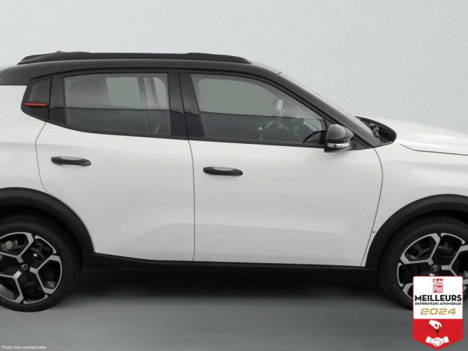 Cette voiture sera facturée 14 398 euros HT + TVA, dans certains cas la TVA est récupérable, exemple : organisme bancaire, société de location, parfois mise en statut 2 places, Exportation... renseignez vous auprès du service commercial si possible, Enjoliveur 17" AZURITE, Rétroviseurs extérieurs dégivrants rabattables électriquement, Aide au stationnement AR, Projecteurs LED, Condamnation centralisée avec PLIP, Garnissage Tissu Noir / tissu Asphalt avec Ambiance Urban Grey + Sièges Advanced Comfort - comprend les décors sur les panneaux de portes AV/AR et sur la planche de bord Ultra Blue + le siège conducteur réglable en hauteur + les appui-têtes AV réglables en hauteur + les accoudoirs de porte AV et AR recouverts de textile moussé avec étiquettes « Happy Tags » (messages positifs) + et des poches aumônières au dos des sièges AV, Pack Safety : Alerte de Franchissement Involontaire de ligne (AFIL) Régulateur - limiteur de vitesse Alerte attention conducteur Reconnaissance des panneaux de signalisation Active Safety Brake (Freinage automatique d'urgence), Aide au démarrage en pente, Témoin de non-bouclage des ceintures de sécurité conducteur et passagers, Tablette AR cache-bagages, Feux diurnes à LED, Détection de sous-gonflage, Navigation 3D sur écran 10 +25' tactile Apple CarPlay et Android Auto sans fil + Système audio 6 HP (DAB) + Commande de la radio sur le volant, Boîte manuelle 6 vitesses, Poignées de portes extérieures Noir Brillant, Allumage automatique des feux de croisement, Citroën Head up Display (affichage tête haute) - TFT, Siège conducteur réglable en hauteur, Airbags frontaux + latéraux AV et rideaux, Direction assistée, Volant réglable en hauteur et en profondeur, Essuie-vitres AV automatique (capteur de pluie), ABS + AFU + ESP + REF, Suspension Citroën Advanced Comfort, Lève-vitres AV électriques (descente séquentielle), Coques de rétroviseurs extérieurs Noir Brillant, Climatisation, Recharge sans fil pour smartphone, Barres de toit Noir Brillant, 1 Prise USB-C sur la planche de bord + 2 USB type C en rang 2 (charge rapide 3A)), Volant Gainé, TCS (Contrôle de la traction), Boîtier télématique : Appel d'urgence et Citroën Assistance Comprend les services Connect ONE pendant une période de 10 ans, Sabots AV et AR, Teinte de caisse opaque, Toit bi-ton Noir Perla Nera, Intérieur : ,, - Délai : Semaine 03 (du 12 Janvier 2026 au 18 Janvier 2026), Départ garantie : 28/08/2025, Formalités administratives de 350 euros, LOA 24 mois > location avec option d'achat possible pour cette voiture a un prix très intéressant. E-motors, acteur majeur et reconnu de la distribution automobile depuis plus de 25 ans, est votre partenaire dans le choix, l'achat et l'entretien de votre véhicule. Importateur et mandataire auto et Importateur et mandataire voiture neuve, E-motors vous propose un très large choix de modèles disponibles de suite, grâce à un stock permanent de près de 2000 véhicules neufs et occasions, et également sur commande pour un grand nombre de marques et de modèles. Avec E-motors, vous avez la possibilité de financer votre véhicule en leasing / LOA ou en crédit classique. Si vous recherchez la sérénité, nous pouvons aussi effectuer la reprise de votre véhicule d'occasion actuel ! Avec des prix moins chers et des remises importantes, vous êtes certain de faire la meilleure affaire chez E-motors, tout en conservant la qualité de services professionnels à bas prix., Les photos sont non contractuelles., Référence 4137847599, e-motors.fr