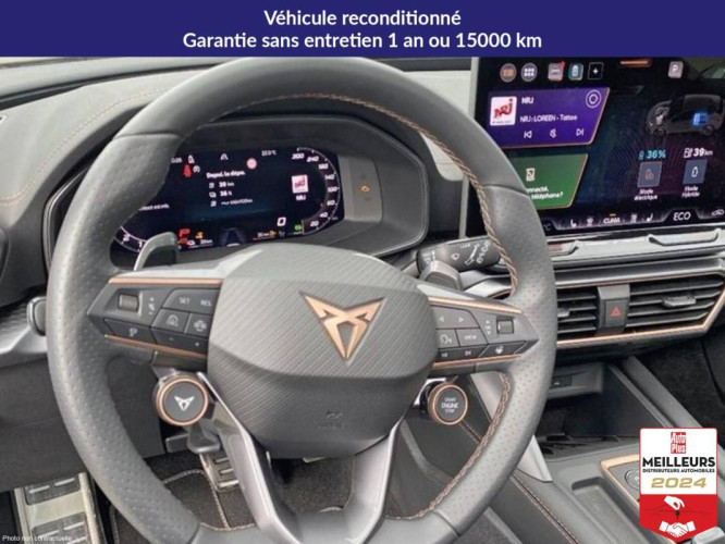 Accès et démarrage mains-libres, Accoudoir central av, Aide au stationnement av et ar, Airbags latéreaux + rideaux et central, Bandeau ar poucesinfinite light pouces intégrant le logo cupra lumineux avec signature lumineuse tri-led et cérémonie de bienvenue, Batterie garantie 8 ans ou 160 000 km, Câble de recharge mode 2 pour prise domestique, Caméra de recul, Capteur de pluie et de luminosité, Ciel de pavillon noir, Climatisation automatique bizone poucesclimatronic pouces, Connectivité 4x usb-c éclairée et bluetooth, Connectivity box avec chargeur à induction, Cupra box - bracelet et coque de clé en fibre de carbone, Cupra connect, Design intérieur pure - sièges sports bimatière textile et tep noir asphalte - plancher de bord noire texturée avec inserts dark alu - contre-portes en tep noir texturés - conducteur : réglage manuel de la hauteur et lombaire - passager : réglage manuel de la hauteur et lombaire, Détection de fatigue et somnolence, Digital cockpit 10 +25 pouces, Direction dynamique, Dossiers ar rabattables 2/3 - 1/3, Ecall - appel d'urgence, Eclairage de bienvenue avec projection du logo cupra au sol, Fixations isofix avec top-tether à l'ar, Front assist avec détection des piétons et cyclistes, Full link avec carplay et android auto sans fil, Garantie constructeur 2 ans + kilométrage illimité, Jantes en alliage 18 pouces performance usinées, Lampes de lecture à l'av et à l'ar, Lane assist, Light assist - feux de route intelligents, Pare-soleils avec miroirs de courtoisie éclairés, Projecteurs anti-brouillard avec cornering light et coming home, Projecteurs full led avec signature lumineusetri-led, Radio numérique dab, Réglage en hauteur et lombaire des sièges av, Régulateur de vitesse adaptatif acc, Rétroviseur intérieur électrochrome, Seuils de porte cupra rétro-éclairés, Smart ambient light (éclairage d'ambiance intérieur intelligent), Système audio à 6 hp avec contrôle vocal, Système d'info-divertissement avec écran tactile hd 12 +9 pouces et touches de commandes tactiles rétro-éclairées, Tapis de sol en matière recyclée avec surpiqûres cuivrées cupra, Traffic sign recognition - reconnaissance des panneaux de signalisation, Vitres ar surteintées, Volant supersports cupra en cuir avec boutons satellites + chauffant avec palettes de changement de rapport, Câble de recharge mode 3 pour wallbox, Design intérieur dynamic - sièges baquets suédine noir asphalte avec poinçonnage et surpiqûres cuivrées - logos cupra estampés sur les appuie-têtes - planche de bord noire texturée avec inserts dark alu - contre-portes suédine noire avec poinçonnage cuivré - conducteur : siège électrique + dont r, Jantes en alliage 19 pouces polar cuivrées avec dcc, Jupes latérales, Toit ouvrant panoramique, Intérieur : ,, Référence 6136125184, - Délai : 3 semaines, Formalités administratives de 350 euros. E-motors, acteur majeur et reconnu de la distribution automobile depuis plus de 25 ans, est votre partenaire dans le choix, l'achat et l'entretien de votre véhicule. Importateur et mandataire auto et Importateur et mandataire voiture neuve, E-motors vous propose un très large choix de modèles disponibles de suite, grâce à un stock permanent de près de 2000 véhicules neufs et occasions, et également sur commande pour un grand nombre de marques et de modèles. Avec E-motors, vous avez la possibilité de financer votre véhicule en leasing / LOA ou en crédit classique. Si vous recherchez la sérénité, nous pouvons aussi effectuer la reprise de votre véhicule d'occasion actuel ! Avec des prix moins chers et des remises importantes, vous êtes certain de faire la meilleure affaire chez E-motors, tout en conservant la qualité de services professionnels à bas prix., Les photos sont non contractuelles., e-motors.fr