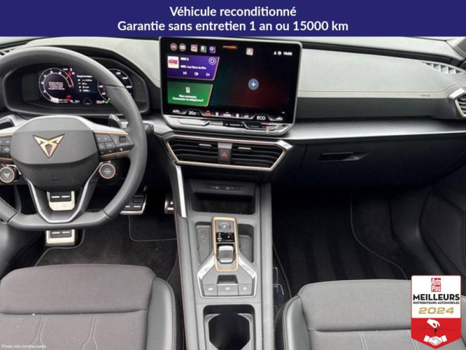 Accès et démarrage mains-libres, Accoudoir central av, Aide au stationnement av et ar, Airbags latéreaux + rideaux et central, Bandeau ar poucesinfinite light pouces intégrant le logo cupra lumineux avec signature lumineuse tri-led et cérémonie de bienvenue, Batterie garantie 8 ans ou 160 000 km, Câble de recharge mode 2 pour prise domestique, Caméra de recul, Capteur de pluie et de luminosité, Ciel de pavillon noir, Climatisation automatique bizone poucesclimatronic pouces, Connectivité 4x usb-c éclairée et bluetooth, Connectivity box avec chargeur à induction, Cupra box - bracelet et coque de clé en fibre de carbone, Cupra connect, Design intérieur pure - sièges sports bimatière textile et tep noir asphalte - plancher de bord noire texturée avec inserts dark alu - contre-portes en tep noir texturés - conducteur : réglage manuel de la hauteur et lombaire - passager : réglage manuel de la hauteur et lombaire, Détection de fatigue et somnolence, Digital cockpit 10 +25 pouces, Direction dynamique, Dossiers ar rabattables 2/3 - 1/3, Ecall - appel d'urgence, Eclairage de bienvenue avec projection du logo cupra au sol, Fixations isofix avec top-tether à l'ar, Front assist avec détection des piétons et cyclistes, Full link avec carplay et android auto sans fil, Garantie constructeur 2 ans + kilométrage illimité, Jantes en alliage 18 pouces performance usinées, Lampes de lecture à l'av et à l'ar, Lane assist, Light assist - feux de route intelligents, Pare-soleils avec miroirs de courtoisie éclairés, Projecteurs anti-brouillard avec cornering light et coming home, Projecteurs full led avec signature lumineusetri-led, Radio numérique dab, Réglage en hauteur et lombaire des sièges av, Régulateur de vitesse adaptatif acc, Rétroviseur intérieur électrochrome, Seuils de porte cupra rétro-éclairés, Smart ambient light (éclairage d'ambiance intérieur intelligent), Système audio à 6 hp avec contrôle vocal, Système d'info-divertissement avec écran tactile hd 12 +9 pouces et touches de commandes tactiles rétro-éclairées, Tapis de sol en matière recyclée avec surpiqûres cuivrées cupra, Traffic sign recognition - reconnaissance des panneaux de signalisation, Vitres ar surteintées, Volant supersports cupra en cuir avec boutons satellites + chauffant avec palettes de changement de rapport, Câble de recharge mode 3 pour wallbox, Jupes latérales, Toit ouvrant panoramique, Intérieur : ,, - Délai : 3 semaines, Formalités administratives de 350 euros. E-motors, acteur majeur et reconnu de la distribution automobile depuis plus de 25 ans, est votre partenaire dans le choix, l'achat et l'entretien de votre véhicule. Importateur et mandataire auto et Importateur et mandataire voiture neuve, E-motors vous propose un très large choix de modèles disponibles de suite, grâce à un stock permanent de près de 2000 véhicules neufs et occasions, et également sur commande pour un grand nombre de marques et de modèles. Avec E-motors, vous avez la possibilité de financer votre véhicule en leasing / LOA ou en crédit classique. Si vous recherchez la sérénité, nous pouvons aussi effectuer la reprise de votre véhicule d'occasion actuel ! Avec des prix moins chers et des remises importantes, vous êtes certain de faire la meilleure affaire chez E-motors, tout en conservant la qualité de services professionnels à bas prix., Les photos sont non contractuelles., Référence 7132280889, e-motors.fr