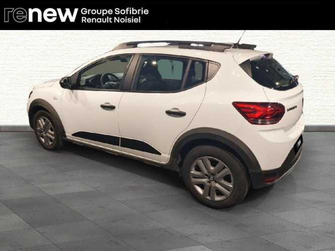 ECO-G 100 Stepway Essentiel, GPL, blanc, 12/11/2021, Projecteurs antibrouillard, Barres de toit longitudinales, Condamnation centralisée des portes à distance, Condamnation des ouvrants en roulant, Rétroviseur intérieur jour/nuit, Volant mousse, Rétroviseurs extérieurs à réglages manuel, Fonction éco-mode, Régulateur et limiteur de vitesse, Ordinateur de bord, Lève-vitres AV électriques, Vitres teintées, Système anti-blocage des roues, Kit de gonflage, Volant réglable en hauteur, Système de fixation Isofix, Peinture opaque, Climatisation manuelle, Alerte d'oubli de bouclage des ceintures de sécurité, Allumage automatique des feux, Détection de pression des pneus, 3 appuis-têtes AR, Clé 3 boutons, Console basse + rangement ouvert, Siège conducteur réglable en hauteur + accoudoir AV, Cluster TFT, Enjoliveur 16'' Saria - Stepway, Harmonie intérieure, Sellerie Stepway avec surpiqures, Media control, Airbag frontal conducteur et passager, Airbag latéral avant : thorax + rideau, Assistance au freinage d'urgence + allumage des warnings, Bouton appel d'urgence, Feux arrières avec signature lumineuse Y, Système de freinage d'urgence autonome à des vitesses interurbaines 30-140km/h, Banquette AR rabattable 1/3-2/3, Signature lumineuse DACIA en Y à LED, Feux de jour à LED, Rappel de bouclage de ceintures