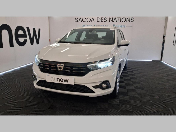 TCe 90 Confort, essence, blanc, 14/04/2022, Lève-vitres AR électriques, Projecteurs antibrouillard, Condamnation centralisée des portes à distance, Condamnation des ouvrants en roulant, Rétroviseur intérieur jour/nuit, Fonction éco-mode, Régulateur et limiteur de vitesse, Ordinateur de bord, Vitres teintées, Système anti-blocage des roues, Kit de gonflage, Rétroviseurs extérieurs ton carrosserie, Aide au parking AR, Lève-vitres AV électriques, conducteur impulsionnel, Système de fixation Isofix, Rétroviseurs extérieurs électriques et dégivrants, Climatisation manuelle, Volant réglable en hauteur et en profondeur, Alerte d'oubli de bouclage des ceintures de sécurité, Détection de pression des pneus, Allumage des feux et essuie-glace automatiques, 3 appuis-têtes AR, Clé 3 boutons, Console basse + rangement ouvert, Siège conducteur réglable en hauteur + accoudoir AV, Cluster TFT, Enjoliveur 16'' Saria, Harmonie intérieure, Sellerie Confort avec surpiqures, Volant Soft Feel TEP, Airbag frontal conducteur et passager, Airbag latéral avant : thorax + rideau, Assistance au freinage d'urgence + allumage des warnings, Bouton appel d'urgence, Feux arrières avec signature lumineuse Y, Système de freinage d'urgence autonome à des vitesses interurbaines 30-140km/h, Banquette AR rabattable 1/3-2/3, Media display, Signature lumineuse DACIA en Y à LED, Feux de jour à LED, Rappel de bouclage de ceintures
