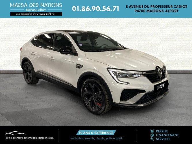 E-Tech 145 - 21B R.S. Line, hybride essence électrique, blanc, 28/06/2022, Airbag passager déconnectable, Airbags frontaux conducteur et passager adaptatif, Airbags rideaux de têtes aux places AV et AR, Alerte Distance Sécurité, Alerte collision AR et freinage actif d'urgence AR piéton, Alerte d'oubli de ceinture de sécurité, Alerte de survitesse combiné à la vitesse limite de la navigation, Allumage automatique des phares et des essuis-glace avec capteur de pluie et de luminosité, Antiblocage des roues ABS, Appuie-têtes AV / AR réglables en hauteur, Assistance au freinage d'urgence, Assistant maintien de voie, Avertisseur de sortie de stationnement, Aérateurs aux places AR, Banquette AR avec accoudoir central, Boite de vitesse E shifter, Boitier connect AIVC, Bouton d'appel d'urgence R-Call, Caméra de recul, Carte Renault avec accès et démarrage mains libres avec fermeture à l'éloignement, Chargeur de téléphone à induction, Climatisation automatique, Commutation automatique des feux de route/croisement, Compartimentage de coffre, Condamnation centralisée des portes, Contrôle dynamique de trajectoire ESC avec ASR, Coques de rétroviseurs extérieures noires, Design exterieur RS-Line, Design intérieur RS-Line, Détecteur d'angle mort, Détection d'obstacle latérale, Easy Park Assist, Easy link avec écran tactile 9.3", navigation, réplication smartphone, Bluetooth, Eclairage d'ambiance, Eclairage des miroirs de courtoisie conducteur et passager, Feux de jour à LED avec signature lumineuse C-Shape, Frein de parking assisté automatique avec Auto hold, Freinage actif d'urgence avec détection piétons et cyclistes, Harmonie intérieure foncée, Indicateur de changement de vitesse, Jantes alliage 18" Silverstone diamantées exclusives R.S. Line avec insert Rouge, Kit de gonflage et de réparation des pneumatiques, Lunette AR chauffante, Lève-vitres AR électriques avec fonction anti-pincement, Lève-vitres AV électriques à impulsion, Programme eco mode, Projecteurs AV full LED Pure Vision, Purificateur d'air, Renault Multi-sense, Régulateur de vitesse Adaptatif, Répétiteurs de clignotant intégrés aux rétroviseurs, Rétroviseur intérieur électrochrome sans contour, Rétroviseurs extérieur dégivrant, réglables et rabattables électriquement, Sellerie mixte cuir-suédine surpiqués rouge, Signature R.S. Line, Sièges AV chauffants, Sièges AV électriques, Système ISOFIX, Système ISOFIX aux places latérales AR et passager AV, Système de surveillance de la pression des pneus, Tableau de bord avec écran numérique couleur 7'', Vitres et lunette AR surteintées, Volant chauffant, Volant cuir pleine fleur