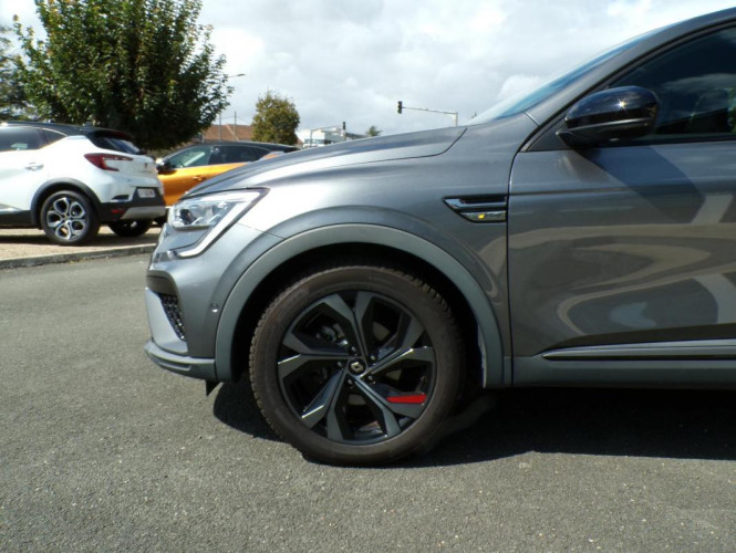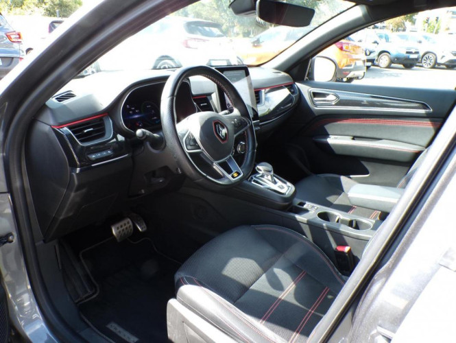 E-Tech 145 - 21B R.S. Line, hybride essence électrique, gris, 21/03/2022, Lunette AR chauffante, Lève-vitres AV électriques à impulsion, Vitres et lunette AR surteintées, Assistance au freinage d'urgence, Sièges AV chauffants, Antiblocage des roues ABS, Airbag passager déconnectable, Indicateur de changement de vitesse, Eclairage d'ambiance, Régulateur de vitesse Adaptatif, Alerte Distance Sécurité, Alerte d'oubli de ceinture de sécurité, Détecteur d'angle mort, Rétroviseurs extérieur dégivrant, réglables et rabattables électriquement, Volant chauffant, Banquette AR avec accoudoir central, Condamnation centralisée des portes, Compartimentage de coffre, Airbags frontaux conducteur et passager adaptatif, Assistant maintien de voie, Projecteurs AV full LED Pure Vision, Caméra de recul, Easy Park Assist, Climatisation automatique, Commutation automatique des feux de route/croisement, Chargeur de téléphone à induction, Frein de parking assisté automatique avec Auto hold, Alerte franchissement de ligne, Kit de gonflage et de réparation des pneumatiques, Harmonie foncé, Système ISOFIX aux places latérales AR et passager AV, Design exterieur RS-Line, Design intérieur RS-Line, Carte Renault avec accès et démarrage mains libres avec fermeture à l'éloignement, Renault Multi-sense, Alerte collision AR et freinage actif d'urgence AR piéton, Allumage automatique des phares et des essuis-glace avec capteur de pluie et de luminosité, Avertisseur de sortie de stationnement, Boite de vitesse E shifter, Contrôle dynamique de trajectoire ESC avec ASR, Détection d'obstacle latérale, Feux de jour à LED avec signature lumineuse C-Shape, Programme eco mode, Répétiteurs de clignotant intégrés aux rétroviseurs, Rétroviseur intérieur électrochrome sans contour, Aérateurs aux places AR, Appuie-têtes AV / AR réglables en hauteur, Eclairage des miroirs de courtoisie conducteur et passager, Lève-vitres AR électriques avec fonction anti-pincement, Purificateur d'air, Sièges AV électriques, Coques de rétroviseurs extérieures noires, Système de surveillance de la pression des pneus, Freinage actif d'urgence avec détection piétons et cyclistes, Bouton d'appel d'urgence R-Call, Sellerie mixte cuir-suédine surpiqués rouge, Signature R.S. Line, Volant cuir pleine fleur, Boitier connect AIVC, Système multimédia EASY LINK avec écran tactile 9, 3", navigation, Bluetooth, Tableau de bord avec écran numérique couleur 7'', Airbags rideaux de têtes aux places AV et AR, Jantes alliage 18" Silverstone diamantées exclusives R.S. Line avec insert Rouge, Easy link avec écran tactile 9.3", navigation, réplication smartphone, Bluetooth, Système ISOFIX, Alerte de survitesse combiné à la vitesse limite de la navigation