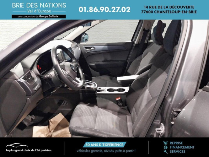 mild hybrid 140 EDC FAP - 22 Evolution, essence, gris, 16/06/2023, Lunette AR chauffante, Lève-vitres AV électriques à impulsion, Vitres et lunette AR surteintées, Limiteur - régulateur de vitesse, Assistance au freinage d'urgence, Sièges AV réglable en hauteur, Antiblocage des roues ABS, Airbag passager déconnectable, Coques de rétroviseurs ton caisse, Frein de parking assisté, Indicateur de changement de vitesse, Alerte Distance Sécurité, Alerte d'oubli de ceinture de sécurité, Rétroviseurs extérieur dégivrant, réglables et rabattables électriquement, Condamnation centralisée des portes, Compartimentage de coffre, Airbags frontaux conducteur et passager adaptatif, Assistant maintien de voie, Aide au parking AV et AR, Projecteurs AV full LED Pure Vision, Caméra de recul, Climatisation automatique, Commutation automatique des feux de route/croisement, Rétroviseur intérieur jour/nuit, Kit de gonflage et de réparation des pneumatiques, Harmonie foncé, Carte Renault avec accès et démarrage mains libres avec fermeture à l'éloignement, Allumage automatique des phares et des essuis-glace avec capteur de pluie et de luminosité, Contrôle dynamique de trajectoire ESC avec ASR, Feux de jour à LED avec signature lumineuse C-Shape, Programme eco mode, Répétiteurs de clignotant intégrés aux rétroviseurs, Aérateurs aux places AR, Appuie-têtes AV / AR réglables en hauteur, Eclairage des miroirs de courtoisie conducteur et passager, Lève-vitres AR électriques avec fonction anti-pincement, Purificateur d'air, Système de surveillance de la pression des pneus, Freinage actif d'urgence avec détection piétons et cyclistes, Bouton d'appel d'urgence R-Call, Sellerie tissu Noir Titane, Volant gainé en similicuir Soft Touch, Boitier connect AIVC, Airbags rideaux de têtes aux places AV et AR, Banquette AR rabattable 1/3-2/3, Navigation embarquée avec cartographie Europe, Tableau de bord avec écran couleur 4, 2'' et compteurs analogiques, Système ISOFIX, Alerte de survitesse combiné à la vitesse limite de la navigation, Compatibilité Apple CarPlay Wifi, Jantes alliage 17" Bahamas diamantées noires