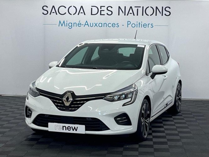 V E-Tech 140 Intens, hybride essence électrique, blanc, 31/03/2021, Allumage automatique des feux et des essuie-glaces, Régulateur limiteur de vitesse, Assistance au freinage d'urgence, Siège conducteur réglable en hauteur, Airbag passager déconnectable, Carte Renault "Mains libres", Airbags frontaux, Renault Multi-Sense, Aide au parking AR, Aide au démarrage en côte, Rétroviseurs extérieur dégivrant, réglables et rabattables électriquement, Alerte de survitesse avec reconnaissance des panneaux de signalisation, Pare-soleil avec miroir de courtoisie éclairé, Airbags latéraux AV, Assistant maintien de voie, Rétroviseurs extérieurs ton caisse, Compteur Numérique 7", Mode ECO, Accoudoir central avec rangement, Appuie-têtes AR, Climatisation automatique, Commutation automatique des feux de route/croisement, Harmonie noire, Jantes alliage 16" Philia diamantée grise, Roues Alu 16", Sellerie mixte similicuir Velours, Volant TEP, EASY LINK 7" : Système multimédia connécté avec écran 7" avec Navigation et Radio Numérique DAB, Aide au freinage actif d'urgence avec détection piétons, Feux de stop à LED, Frein de parking assisté automatique avec Auto hold, Navigation, Liseuses AV/AR à LED, Eclairage AV et AR Full LED Pure Vision