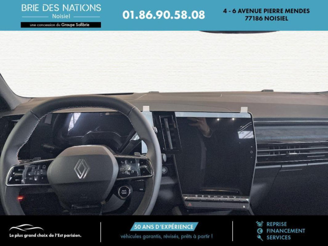 VI E-Tech full hybrid 200 GSR2 esprit Alpine, hybride essence électrique, gris, 28/11/2024, ABS, Airbags frontaux conducteur et passager, Airbags latéraux AV, Direction assistée, Verrouillage centralisé, Contrôle dynamique de trajectoire ESC, Barres de toit longitudinales, Lève-vitres AV électriques, Aide au parking AV/AR et latéral, Caméra de recul, Commutation automatique des feux de route/croisement, Système de surveillance de la pression des pneus, Multi-sense, Carte Renault accès et démarrage mains libres, Chargeur smartphone à induction, Alerte de distance de sécurité, Avertisseur d'angle mort et prévention sortie de voie en cas de dépassement, Régulateur de vitesse adaptatif, Frein de parking électrique avec fonction Auto-Hold, 4Control advanced, Feux AV full LED Adaptative Vision, Climatisation automatique bi-zone, Faux plancher de coffre, Hayon motorisé main libre, Miroir de surveillance enfants, Lumière d'ambiance personnalisable, Rétroviseur intérieur électrochrome sans cadre, Rétroviseurs extérieurs électriques, dégivrants, rabattables automatiquement, Volant réglable en hauteur et profondeur, Ciel de toit gris anthracite, Clignotants AR dynamiques, Feux AR à LED avec effet 3D, Jantes alliage 20" Daytona diamantées noir, Pack Design esprit Alpine intérieur, Sellerie mixte tissu carbone / alcantara avec surpiqûres bleu, Seuil de portes, Tableau de bord full numérique 12, 3'', Alerte franchissement de ligne et assistant maintien dans la voie, Avertisseur de sortie de stationnement en marche AR avec freinage d'urgence automatique, Sortie sécurisée des occupants, Assistance de conduite avec une remorque, 7 places, Banquette AR coulissante 1/3-2/3 avec dossier 40/20/40, Sièges AV manuels réglables en hauteur, Pack Design esprit Alpine avec calandre à damiers, Prises au rang 3, Système Multimédia openR link 12" : navigation, services Google, audio Arkamys Auditorium, Système ISOFIX sur siège passager & 2 places rang 2, Alerte détection de fatigue, Prédisposition éthylotest, Détection intelligente des limitations de vitesse et prévention survitesse, My Safety switch, Contrôle de la traction, Boîte de vitesse automatique 4 rapports