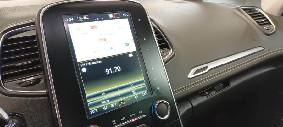 IV Blue dCi 120 EDC Intens, diesel, blanc nacré, 28/10/2019, Lève-vitres électrique AR impulsionnels, Régulateur limiteur de vitesse, Projecteurs antibrouillard, Kit de gonflage et de réparation, Vitres AR surteintées, Lève-vitres électriques AV impulsionnels, ABS, Rétroviseur intérieur électrochrome, Peinture opaque, Frein de parking assisté, Carte Renault d'accés et démarrage mains libres, Avertisseurs d'angles morts, Volant Cuir Nappa, Rétroviseurs extérieur électriques rabattables, Aide au parking latéral, Renault Multi-Sense, Commutation automatique des feux de route/croisement, Alerte Distance Sécurité, Avertisseur de franchissement de ligne, Caméra de recul, Climatisation automatique bi-zone, Rideaux pare-soleil AR, Alerte de survitesse avec reconnaissance des panneaux de signalisation, Harmonie Carbone foncé, Prise 12V AV/AR, Feux de jour à guide de lumière LED et effet 3D, Airbags frontaux et latéraux AV, Airbags rideaux AV / AR, Boîte à gants réfrigérée, Console centrale de rangement coulissante avec accoudoir, Modularité One-Touch, Jantes alliage 20'' Quartz, Teinte bi-ton, Sellerie mixte similicuir / Carbone Foncé, Radio multimédia avec écran capacitif 8, 7'', Aide au freinage actif d'urgence avec détection piétons, Alerte détection de fatigue, Contrôle dynamique de trajectoire ESC avec aide au démarrage en côte, Système de fixations ISOFIX sur le siège passager AV et aux 2 places latérales du rang 2, R-LINK 2, système multimédia connecté avec cartographie Europe, Coques de rétroviseurs ton toit, Android Auto & Apple CarPlay, Projecteurs antibrouillard LED, Projecteurs AV full LED Pure Vision, Alerte oubli de ceinture se sécurité, Siège passager avec réglage en hauteur et mise en tablette, Nouvelle caméra de recul, Navigation 2019, Evolution MULTI-SENSE 2019, Radio multimédia DAB avec écran tactile 8, 7''