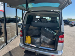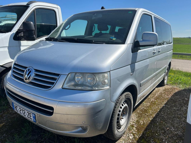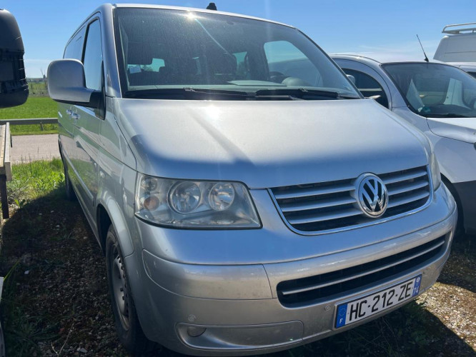 2.5 TDI 174 FAP 4Motion Carat (7pl), diesel, gris clair, 04/05/2005, 2 sieges individuels, pivotants, coulissants et amovibles dans la rangee centrale, 2 sieges supplementaires, 2 spots d'eclairage AV, 2eme siege individuel dans la rangee du milieu, 3eme feu stop, ABS, Accoudoir central AR, Aide au stationnement AV et AR, Aide au stationnement avant et arriere, Airbag conducteur et passager, Airbag passager deconnectable, Airbag rideaux conducteur et passager, Airbags lateraux AV, Alarme antivol, Antenne radio integree, Anti-demarrage electronique, Anti-patinage ASR, Baguettes de protection laterales couleur carrosserie, Banquette AR pliable et coulissante 3 places, Batterie additionnelle (75Ah/420A)., Boite a gants verrouillable, eclairee et refrigeree, Buses de lave-glace chauffantes, Buses de lave-glace degivrantes, Cache-bagages, Capteur de pluie et essuie-glace avec fonction intemittence automatique, Ceintures de securite 3 points et appui-tete a toutes les places, Cendrier avec allume-cigare, Chargeur 6 CD, Climatisation Climatronic 3 zones conducteur, passager AV et compartiment AR avec fonction recyclage, Climatisation electronique Climatronic, Compteurs cercle de chrome, Contour de calandre chrome, Couvre bagage, Crochets porte-manteau dans le coffre, Direction assistee, Doubles projecteurs halogene avec verre transparent, Eclairage bleu sur les instruments, Eclairage interieur a extinction temporisee., ESP, ESP et EDL, Essuie-glace AR et lave glace, Essuie-glace AV a 2 vitesses et intermitence et lave-glace, Fenetres AR droite et gauche coulissantes, Fenetres dans compartiment passagers/charge en verre teinte sombre (Privacy), verre athermique, Fermeture assistee du coffre, Fermeture assistee du hayon, Feux antibrouillard AR, Freins a disque ventiles a l'AR, Freins a disque ventiles a l'AV, Glissieres dans l'espace AR permettant de faire coulisser les sieges, Hayon avec baie de fenetre, Inserts ronce de noyer, Jantes 17" "Solace" 7J x 17" et pneus 235/55 R17, Jantes alliage 17", Jantes alliage leger "Thunder" 7Jx17 et pneus 235/55 R17 103 W xl, Jantes alu Solace 7Jx17 et pneus 235/55 R17 103 W xl, Jantes alu Thunder 7Jx17 et pneus 235/55 R17 103 W xl, Jauge de temperature d'huile et voltmetre sur le tableau de bord, Levier de vitesses de type "Joystick", Lunette AR degivrante, Marchepieds avec insert en inox, Moquette dans espace AR., MSR: regulateur de couple d'inertie moteur, Ordinateur de bord, Pack Securite, Pack Securite., Pack Style, Pare-chocs et boitier de retroviseurs exterieurs dans la couleur de la carrosserie, Pares-soleil pour le conducteur et le passager AV avec miroir de courtoisie eclaire, Phares antibrouillard AV, Phares halogenes equipes d'un reglage du site, Poches aumonieres au dos des sieges AV, Poignees de maintien AR, Poignees de portes couleur carrosserie, Porte coulissante droite et gauche electrique avec fermeture assistee., Porte coulissante laterale droite avec securite enfants, Porte laterale coulissante gauche avec securite enfants, Porte laterale coulissante motorisee, Porte laterale coulissante motorisee actionnables a partir des poignees de portes exterieures et int, Porte-gobelet, Prise 12V sur le tableau de bord, deux dans l'espace AR et une dans le coffre, Prise 12V sur le tableau de bord, une dans l'espace AR et une dans le coffre, Protection antidemarrage Immotronic, Radio CD "Delta", Range-bouteille (1.5L) dans la console centrale, Rangement dans l'espace AR, Regulateur de vitesse, Repetiteurs lateraux de clignotants, Retroviseurs exterieurs electriques degivrants, Revetement de sol AV et AR en moquette, Revetement des sieges en cuir/alcantara, Revetement lateraux en cuir, Rideaux de pare-soleil sur les 4 vitres laterales AR, Roue de secours en Alliage avec pneu de taille normale, Sellerie Alcantara et cuir, Seuils de porte "Coccinelle", Sieges AV chauffants, Sieges AV reglables en hauteur avec reglage lombaires et accoudoirs, Sieges conducteur et passager chauffants, Signal sonore pour oubli d'extinction des feux, Spots de lecture AR, Systeme de fixation ISOFIX sur sieges individuels AR et sur places exterieures de la banquette, Table ronde centrale, pliable, coulissante avec porte gobelet, cendrier et espace de rangement, Table ronde centrale, pliable, coulissante et espace de rangement, Transmission 4Motion, Triangle de presignalisation et trousse a pharmacie, Verrouillage centralise a distance avec securite enfant et commande interieure, Vide-poche ferme au dessus de la console centrale, Vide-poches dans les portieres, Vitres AR surteintees vertes 35% a partir de la seconde rangee, Vitres athermiques teintees vertes, Vitres AV electriques avec systeme anti-pincement, Vitres teintees vertes, Volant et pommeau de levier de vitesse en cuir, Volant multifonctions, Volant reglable en hauteur et en profondeur