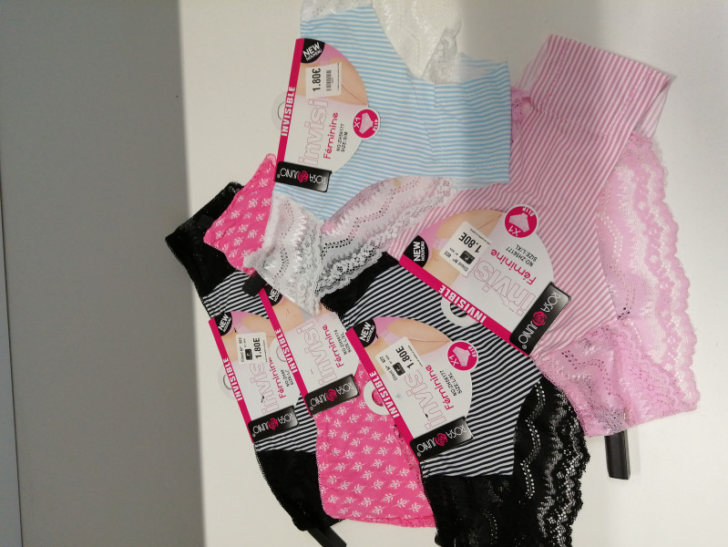 culotte invisible, différents imprimés dans les ton de rose, bleu, gris ,blanc. taille S/M et L/XL