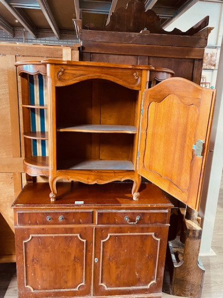 Très joli meuble haut avec une décoration en tissu en très bon état.